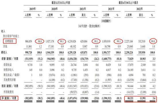 和目前在港股上市的猎聘做个对比,就能看出差距了。